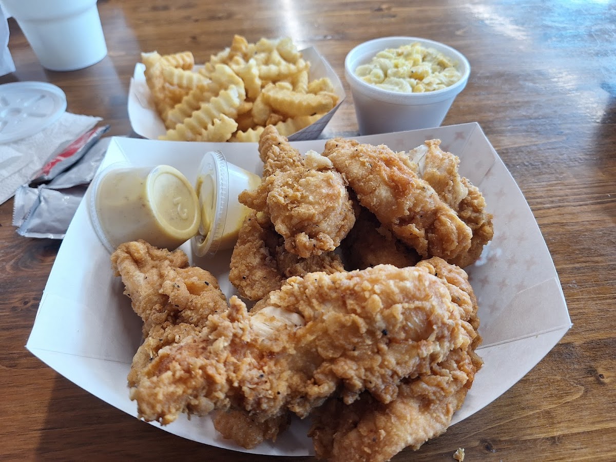 Tender combo was reasonably priced, came with 3 tenders, a side, and a drink. They have lots of sides to choose from. The tenders were crispy and juicy, and the honey mustard dipping sauce provided was delicious. Service was very fast, with the chicken in my hand about 5 minutes after opening the front door. I was 3rd in line to order. I'd definitely recommend this over any chain fast food place as the food is excellent and fairly priced, with amazing service. Very down home environment. If you're going through Johnston make sure to stop here.